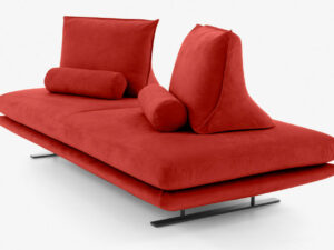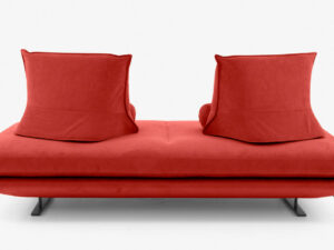 Structure en panneau à écailles sanglée et parementée de mousse polyuréthane haute résilience Bultex 50 kg/m3 + ouate de polyester 110 g/m2 – coussin d’assise mousse en polyuréthane haute résilience Bultex 36kg/m3 et ouate de polyester 110g/m2.