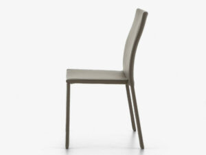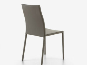 Chaise avec structure en acier parementée d’une couche de mousse polyéther densité 43 kg/m3 – 4,1 kPa et entièrement tapissée de cuir de bovin, vachette fleur corrigée pigmentée.
