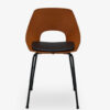Chaise avec structure en acier parementée d’une couche de mousse polyéther densité 43 kg/m3 – 4,1 kPa et entièrement tapissée de cuir de bovin, vachette fleur corrigée pigmentée.