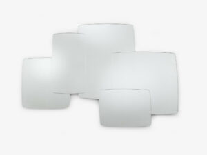 Amalgame de miroirs de dimensions différentes pour réaliser un grand miroir original qui pourra se retrouver dans une entrée, au dessus d’une cheminée contemporaine, ou éventuellement une salle de bains.