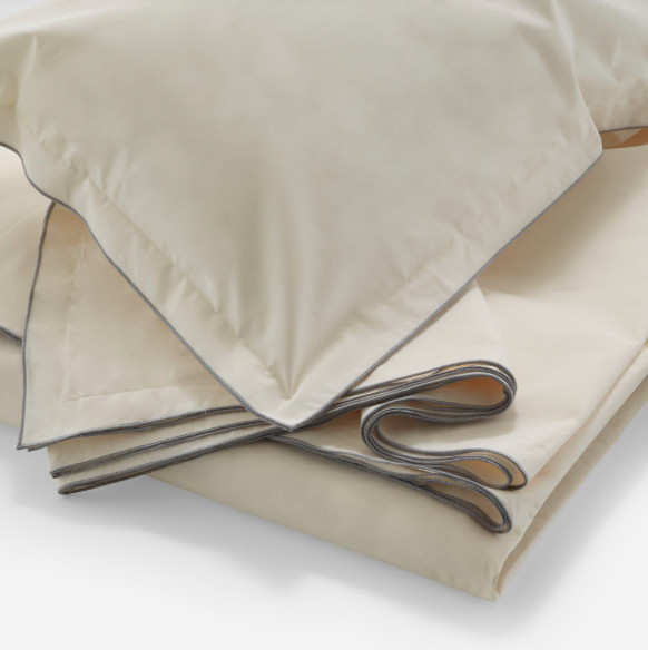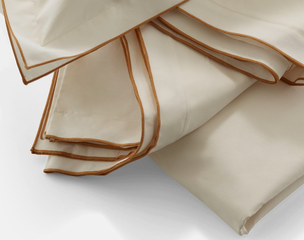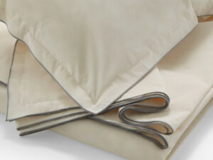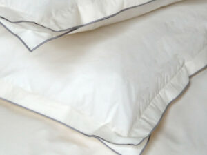OVERLOCK est une nouvelle parure de lit : Taie d’oreillers, Housse de couette et Drap housse à double volants avec un choix de coloris pour le surjet : bleu / bordeaux / gris perle / jaune or. La composition des parures est en Percale 200 TC 100% coton. Le Percale est une variété de tissu de couette très doux et léger. Il est fabriqué à partir de fibres de coton 100% naturelles, qui sont tissées très serré pour créer un tissu solide et durable. Le tissu est très respirant et absorbe l’humidité, ce qui en fait un choix parfait pour les climats chauds ou humides. Il également très confortable et durable et peut être facilement lavé et entretenu.
